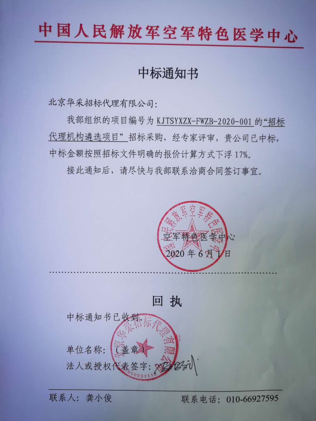 北京華采招標(biāo)代理有限公司成功入圍中國(guó)人民解放軍空軍特色醫(yī)學(xué)中心招標(biāo)代理機(jī)構(gòu)